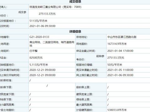 寶龍地產27.51億元競得廣東中山1宗TOD地塊