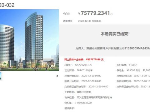 中國網地產訊 12月30日,蘇州吳江區1宗住宅用地…