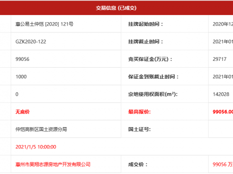 中國網地產訊 1月5日,廣東省惠州市以…