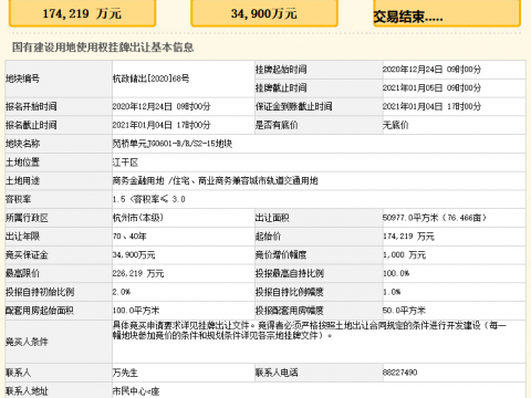 世茂17.42億元摘得杭州市江干區一宗商住用地