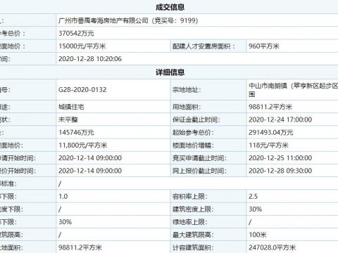 中國網地產訊 12月28日,廣東中山1宗住宅用地成…