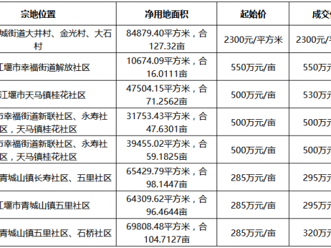 成都27.18億出讓13宗地塊 五糧液9.09億競得都江堰3宗住宅用地