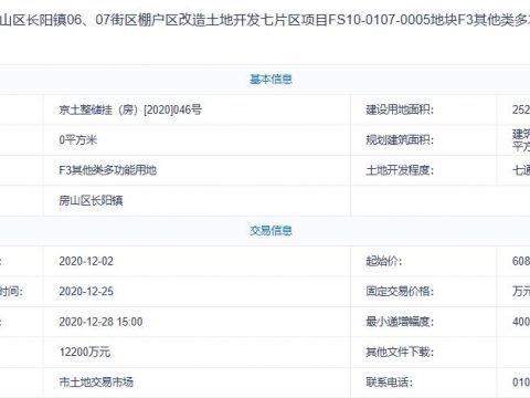 北投新城聯合體6.08億元競得北京房山1宗多功能用地