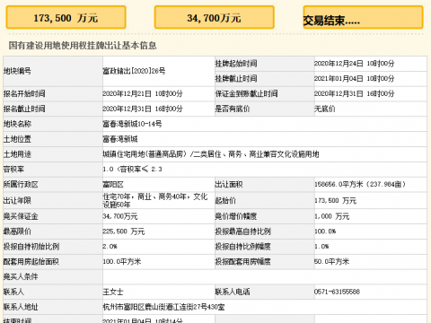 中交+融創17.35億元摘得杭州市富陽區一宗商住用地