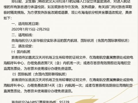 多家航司發公告 武漢出港發熱旅客可辦理退票或改簽